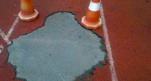 像是以上的这些就需要翻新修补,塑胶跑道翻新修补大概有以下几点步骤: