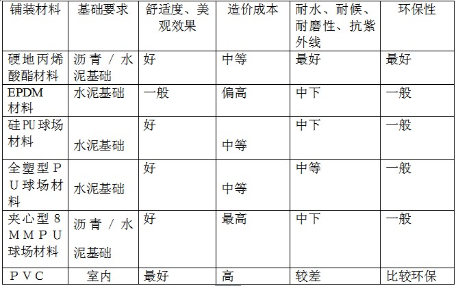 硬地丙烯酸球場、EPDM球場和硅PU/全塑型PU球場