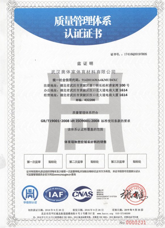 質量管理體系認證證書