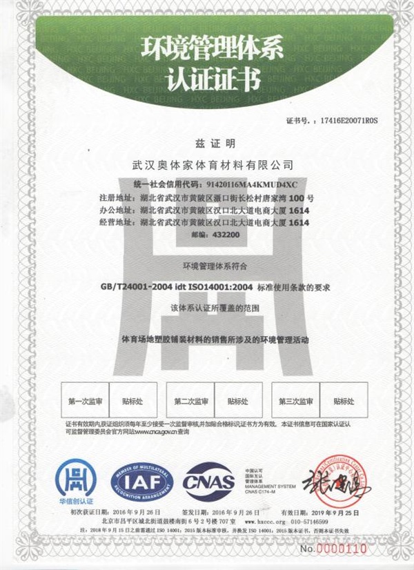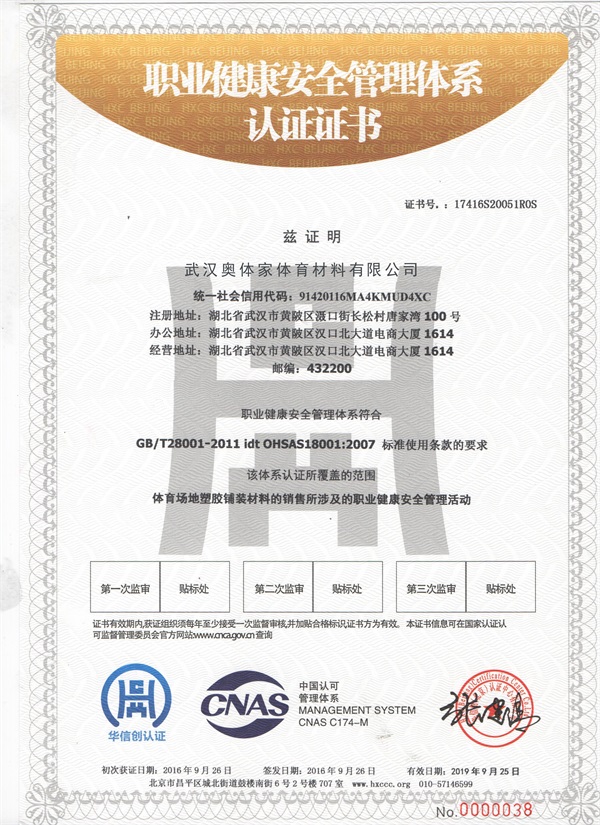職業健康管理體系認證證書